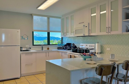 We invite you to experience our 3-bedroom beachfront penthouse with the best views of the mountains and the ocean in all of Puerto Rico! This resort-class facility includes several pools, a water park, playgrounds, mini golf and more. A hidden gem. Only 25 minutes away from the San Juan International Airport, and with easy access to shopping malls, golf courses, restaurants and tourist attractions, such as the El Yunque National Rain Forest.