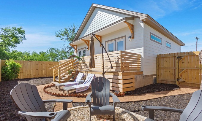 Experience comfort and convenience in the heart of Waco at this stylish 2-bedroom, 2-bath villa. With private suite doors leading to the backyard deck, modern walk-in showers, and a fully stocked kitchen, this retreat blends luxury with a homelike feel. Whether you’re visiting Baylor, exploring Magnolia, or relaxing around the firepit, this home is the perfect base for couples, families, and game nights with friends.