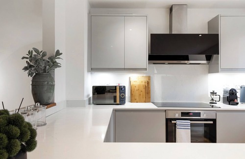 Stay in this stylish 3-bedroom apartment in Battersea on the River Thames with stunning views. Each bedroom has a king-size bed, plus a sofa bed in the open-plan kitchen & living area. Travel by Uber boat across London.