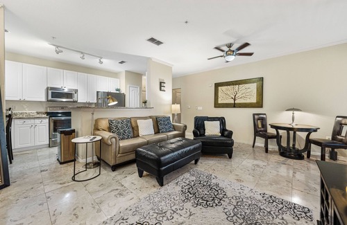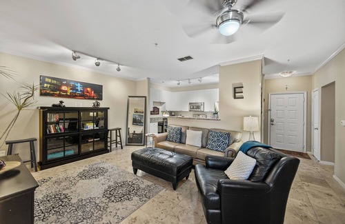 Discover the beauty and fun of Tampa from this 2-bedroom condo right in the middle of trendy midtown Tampa. We are within walking distance of some of the best restaurants in Tampa—Eddie V’s, Ocean Prime, Flemings, etc. The patio that overlooks the water fountain is great for smokers as we ask that you not smoke in the unit. This terrific property offers a master bedroom with queen bed and tv. The second bedroom features a new sofa bed and writing desk ensuring an enjoyable, comfortable stay. With amenities like AC, free WiFi, books and board games, heated pool and fitness room, your stay will be fabulous. We have quality linens and towels. Beach towels are in unit. Cypress Park Beach is 10 minutes away. Busch Gardens and Lowry Oark Zoo are 20 minutes away.Clearwater Beach is 30 minutes away and Anna Maria Island is 45 minutes away. Raymond James and Steinbrenner field are both 10 minutes away for baseball & football fans. International Mall within walking distance.