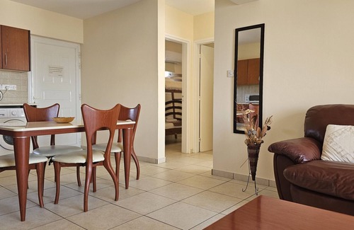 The flat is located in a quiet area of Ayia Napa, within walking distance from Nissi Avenue, where you can find shops and restaurants and have a short walk to Nissi Beach! The new Marina and the Waterpark are within a short distance!