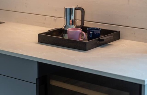 The open-plan living space centres around a kitchen fitted with quality Bosch appliances, a drip coffee machine and a dining table for 10. In addition, guests will find books, games, a Samsung TV, and reliable Wi-Fi.