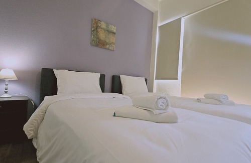 Ascend to the top floor, where two air-conditioned bedrooms await. One bedroom is adorned with a comfortable double bed, and the second bedroom provides two single beds.