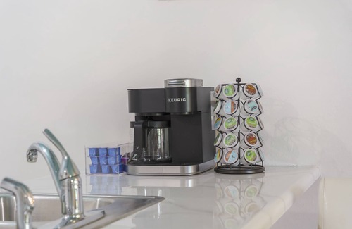 • Dish Pods • Dish Soap • Keurig Coffee Maker (coffee pods, creamer and sugar) • Tea • Trash Bags • Paper Towels • Pots & Pans • Toaster • Kettle • Blender • Baking Sheets • Dinner Plates • Mugs • Cups • Bowls • Can Opener • Bottle Opener • Measuring Cups • Serving Ware • Silverware • Knives • Wine Glasses • Meat Thermometer • Salt • Pepper • Olive Oil • Basic Cleaning Supplies • Ice Cube Trays