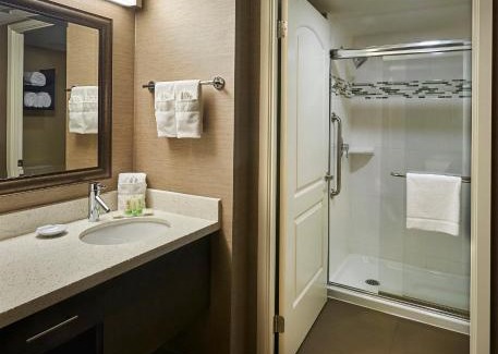 Centrally in downtown Hamilton, this hotel is just a 5-minute walk from Hamilton Convention Centre. It features a heated indoor pool and guest suites that come with a full kitchen. A flat-screen TV and DVD player are provided in all modernly furnished suites at Staybridge Suites Hamilton. All suites include a living space, as well as free access to wired and wireless internet. A hot and cold breakfast buffet is available at Staybridge Suites Hamilton Ontario. It may include fresh fruit, eggs, waffles and pastries. A convenience store is on site for additional drinks and snacks. Social evening receptions are organized on select evenings. Guests can also enjoy the Great Room, which features a home-style theater experience. A fitness center and business center are open 24 hours a day at this hotel. The Art Gallery of Hamilton and Jackson Square shopping center are just a 5-minute walk from this hotel. Hamilton Farmers’ Market, open seasonally, is also a 5-minute walk away.