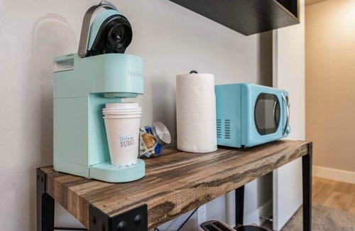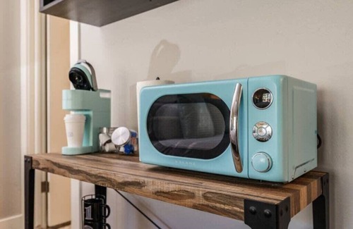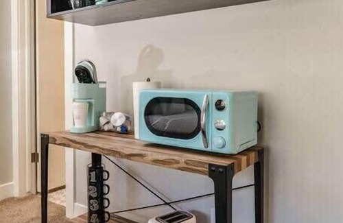 There is a coffee maker, mini fridge, microwave and electric skillet in the master bedroom to make preparing basic meals or reheating leftover convenient to do from home. There is a closet that provides plenty of space for guests to store personal items. There is also a flat screen TV for catching up on your favorite Netflix or Amazon Prime series.