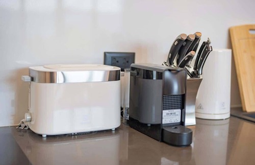 The kitchen is well equipped with appliances such as an induction stove, oven, refrigerator/freezer, toaster, kettle and a Nespresso coffee machine.