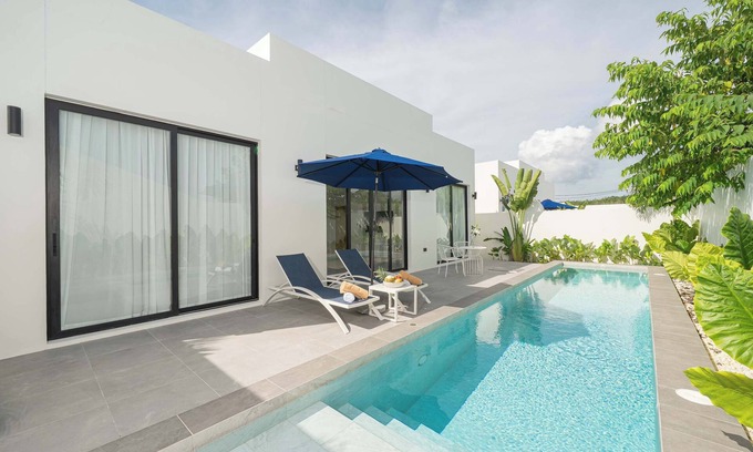 Escape to this brand-new 2-bedroom, 2-bathroom villa, where sleek design meets tropical luxury. Just 10 minutes from Phuket’s pristine beaches—Banana, Naithon, & Haad Laem Sing—it offers a serene hideaway near Phuket's vibrant dining & nightlife. Enjoy AC, ceiling fans, king beds, & a lush private garden with a pool.