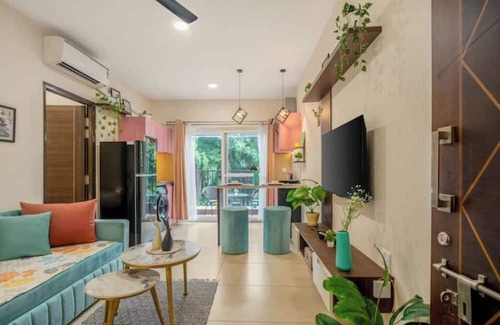 Nestled in the vibrant yet tranquil neighborhood of Siolim, Staymaster Zyric A305 is a stylish and comfortable 1-bedroom apartment ideal for a relaxing escape. Whether you're visiting to explore Goa’s lively coast or simply unwind in a calm setting, this thoughtfully designed apartment offers everything you need — from a common swimming pool and fully-equipped gym to daily housekeeping and high-speed Wi-Fi. Enjoy the charm of North Goa while coming home to modern convenience and serenity.