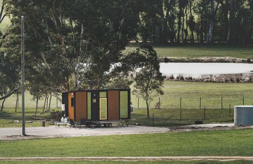 Stella at Sheltered Paddock by Tiny Away is nestled in the rustic countryside, featuring a blend of cropping fields, livestock pastures, and vineyards. In addition to nearby wineries, guests can delve into the vast State Forest, offering opportunities for bushwalking, mountain biking, and trail bike riding.