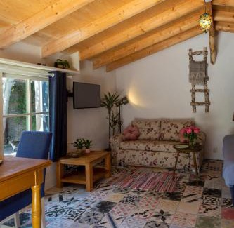 Food & DrinkFruit, Tea/Coffee maker, Bottle of waterBathroomWalk-in shower, Towels, Shower, Toilet paper, Shampoo, Conditioner, Shower cap, Hairdryer, Body soap, Private bathroom, Bathrobe, Toilet, SlippersMedia & TechnologyFlat-screen TV, Cable channels, TVKitchenKitchenware, Microwave, Wine glasses, Electric kettle, Oven, Coffee machine, Dining table, Refrigerator, Stovetop, KitchenetteLiving AreaDining area, Sitting area, SofaGeneralKey access, Fan, Heating, Private entrance, Smoke Alarm, Fire extinguisher, Tile/Marble floor, Trash cansOutdoorsOutdoor furniture, Patio, TerraceBedroomLinens, Wardrobe or closet, Extra long beds (> 6.5 ft)ViewInner courtyard view, Garden viewAccessibilityEntire unit located on ground floorBuilding CharacteristicsDetachedRoom AmenitiesNon-feather pillow, Clothes rack, Socket near the bed |
