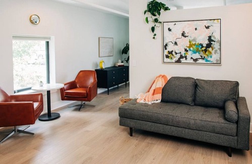 Book an entire boutique hotel for your group's next corporate retreat, family reunion, wedding, or bachelor/bachelorette party! This listing includes 10 private suites thoughtfully curated that offer the comforts of home in a stylish building that’s centrally located in the heart of Nulu, downtown Louisville.