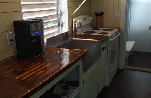 Many guests say they enjoy the enclosed outdoor shower so much they even used either of the indoor showers! The water is so clear with a soft, white sandy bottom that is perfect for swimming or using the included kayaks and paddle boards. In the heart of the quaint lobster fishing town of Spanish Wells, food and liquor stores are very walkable, but we recommend renting a buggy (golf cart) to explore the island and adjoining Russell Island. Lounge chairs, kayaks and paddle boards are included.