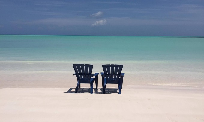 Step from your porch onto the soft white sand & crystal clear water. | House in Spanish Wells