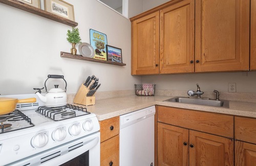 2nd Floor galley kitchen - Has gas stove, microwave, Keurig, and everything you need to cook a meal!