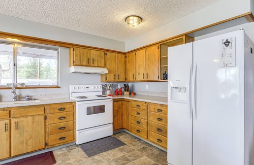 Seeking a relaxing lakeside retreat? Look no further than this Tygh Valley vacation rental! With a spacious interior, 2-level deck, and serene setting overlooking Pine Hollow Reservoir, this 4-bedroom, 2-bath house has everything needed for a fun-filled stay with family or friends. Kayak and fish on-site or tee off just down the road at Pine Meadows Golf Course. Then, end the day back home with s’mores by the fire pit.