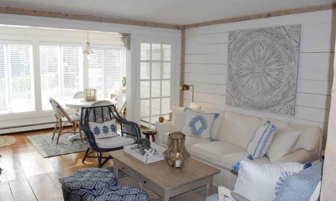 Enjoy Cape Cod from our updated and tastefully decorated cottage in charming Maushop Village, New Seabury. Located in a seaside Nantucket style village, you'll be steps away from the private beach, nearby waterfront dining and a short trail walk from The Poppy Marketplace - filled with quaint shops, restaurants (including The Raw Bar featuring "The Best Lobster Roll on Cape Cod"), mini golf and seasonal weekend live entertainment. Falmouth/Woods Hole and Hyannis are just 20 minutes away - giving you access to shops, restaurants, fishing and the ferries to Martha’s Vineyard and Nantucket. This is a quiet and carefree vacation spot – perfect for anyone wanting a relaxed and safe vacation, where you can unwind or explore the Cape.