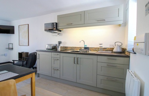 The kitchen is equipped with a refrigerator, as well as an electric kettle, cookware, and a toaster. Other amenities at this 1-bedroom, 1-bathroom rental include heating and wardrobe or closet.