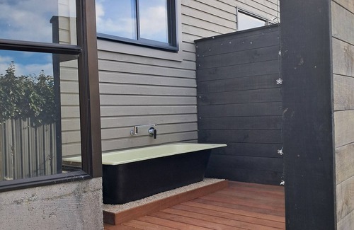 The large open plan kitchen, living and dining area is great for families and groups of friends to catch up. The outdoor bathtub gives you a private, peaceful oasis where you can gaze at the stars while soaking away your worries. Feel safe with an outdoor security camera monitoring the driveway.