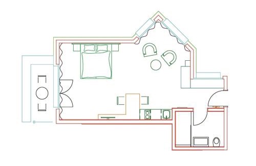 BathroomBody soap, Shower, Towels, Free toiletries, Hairdryer, Toilet, Private bathroom, Walk-in shower, Toilet paper, Shampoo, Bathtub or showerMedia & TechnologyTV, Flat-screen TVKitchenKitchenette, Wine glasses, Dining table, Kitchenware, Microwave, Stovetop, Refrigerator, Coffee machineOutdoorsOutdoor dining area, Outdoor furniture, BalconyLiving AreaDesk, Dining area, Sofa, Sitting areaGeneralHeating, Hardwood or parquet floors, Smoke Alarm, Key card access, Trash cansViewGarden view, Inner courtyard view, ViewBedroomLinens, Wardrobe or closetAccessibilityAccessible by elevator, Upper floors accessible by elevatorRoom AmenitiesClothes rack, Non-feather pillow, Socket near the bedFood & DrinkBottle of water |