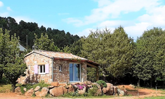 Four pretty houses built from natural stone and set in a 15-hectare estate among vineyards, olive groves and cherry trees, each with its own private space. Enjoy the peaceful surroundings and relax by the swimming pool, shared by all four houses. The small stone house is ideal for two people. Inside, you'll find a lounge/bedroom with a kitchenette, a shower room and a separate toilet. The covered terrace with barbecue invites you to enjoy your freshly prepared meals! Hiking trails start directly from the estate. You can also plan excursions in the surrounding area, on foot or by canoe!