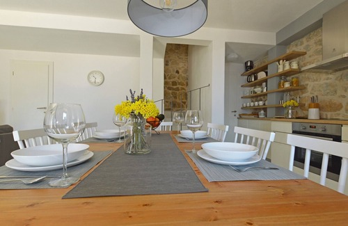 The property has been carefully converted into a beautiful, family-friendly vacation home and preserves its historical heritage. The enchanting location on a slope, in a picturesque hamlet typical of Dalmatia, offers a wonderful panoramic view of the landscape, the sea and the islands.
