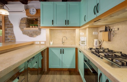 Situated on top of a hill overlooking the green valley and Lake Butoniga, the pet-friendly villa with an authentic Istrian flair offers breathtaking views. It stretches over three floors and provides all the comforts of a contemporary holiday home. There are altogether 4 traditionally styled bedrooms and 3 bathrooms. In addition to a kitchen with a fireplace and dining set on the first floor, the bottom floor includes an entirely new kitchen, dining room, living room, wine bar, and a lounge with a pool table.