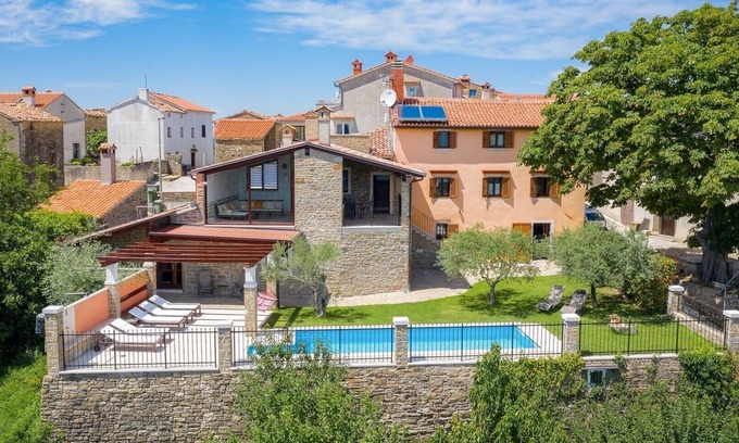 Stone villa Zamask with a pool and a lovely view | Villa in Pazin