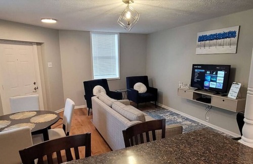 Stylish and clean apartment, perfect for group and family stays. This welcoming space is in the heart of downtown near Van Andel, DeVos, Medical Mile, GVSU, John Ball Zoo, and dozens of restaurants and bars. Completely remodeled with a cozy home away from home feel. The Urban Bungalow sleeps six people; both bedrooms have queen beds, and the living room has a queen pull-out couch. A fully loaded kitchen with a coffee station, on-site laundry, fast Wi-Fi, Hulu, and free street parking.