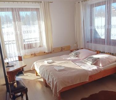 Stramówka offers accommodations in Groń, 3.2 miles from Bania Thermal Baths and 13 miles from Niedzica Castle. The property is around 14 miles from Zakopane Railway Station, 15 miles from Zakopane Aqua Park, and 15 miles from Tatra National Park. The farm stay also features free Wifi and free private parking. A balcony with an outdoor dining area and mountain views is offered in select units. At the farm stay, each unit includes a private bathroom. Guests can relax in the garden at the property. Gubalowka Mountain Train Station is 16 miles from the farm stay, while Kasprowy Wierch Mountain is 18 miles from the property.