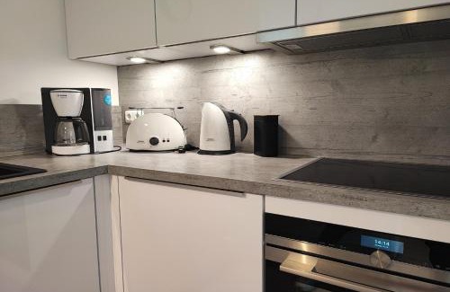 Strandmuschel is located in Eckernförde, just a 2-minute walk from Eckernforde Beach and 16 miles from Kiel University. This property offers access to a terrace, free private parking, and free Wifi. The accommodation features an elevator and bicycle parking for guests. The spacious apartment includes 2 bedrooms, a fully equipped kitchen with a dishwasher and an oven, as well as a coffee machine. Towels and bed linen are available in the apartment. For added privacy, the accommodation features a private entrance. Schauspielhaus Kiel is 17 miles from the apartment, while St. Nikolaus Church is 18 miles from the property.
