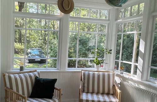 Welcome to our tastefully renovated 1920s dream home in Ystad Sandskog. The beach villa is nestled in lush greenery, in a secluded clearing. Follow the narrow forest path down to the sandy beach and the sea. Enjoy the forest, the ocean, and the proximity to Ystad’s charming town center. Here, historic charm meets modern design — perfect all year round.