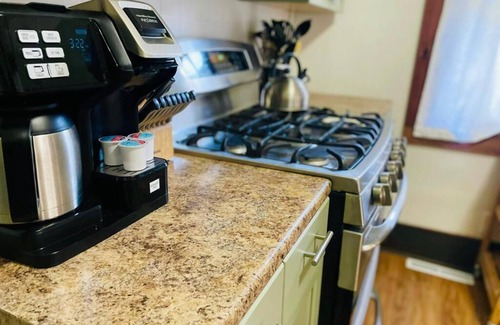 The space is open and bright with tons of natural light and the screened in porch has cozy furniture where you can sit and listen to the stream. Outside there is a beautiful hangout area where you can use our solo stove to have campfires and relax under the solar twinkle lights.