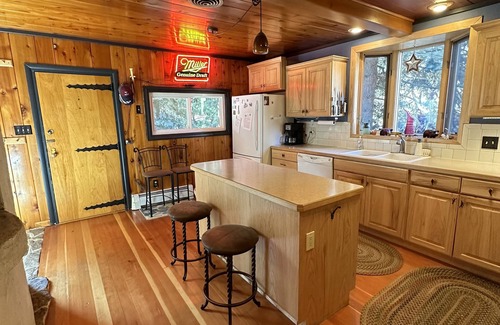 Hot tub - steamer shower - two outdoor fire pits - fish off the large creek side deck (poles and bait included)