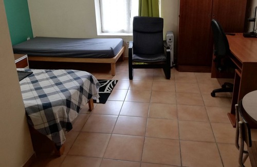 The studio is equipped with 2 single beds with kitchen kitchenette (fridge, hotplates, microwave / oven, netissimo coffee machine), dining table, desk, tv, wifi access. And a private bathroom.