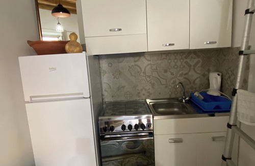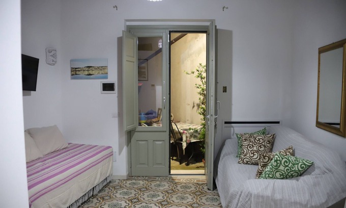 beautiful peaceful studio flat , one sofa double bed one single bed . kitchenette , bathroom . patio . air conditioning and heating . the studio has an independent entrance close to piazza Umberto square where you find all shops and restaurants . you are in the middle of the old town and two minutes from the seaside promenade
