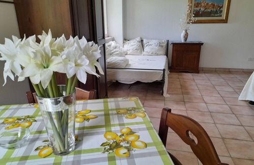 The apartment is a large studio apartment with an independent entrance on the first floor; it was obtained from an annex of the old manor house which for generations has belonged to the Vagni family. It is a large room with a comfortable sofa bed, table and kitchenette - in addition of course to the private bathroom. The apartment benefits from an outdoor area equipped with tables, garden chairs, gazebo and barbecue.