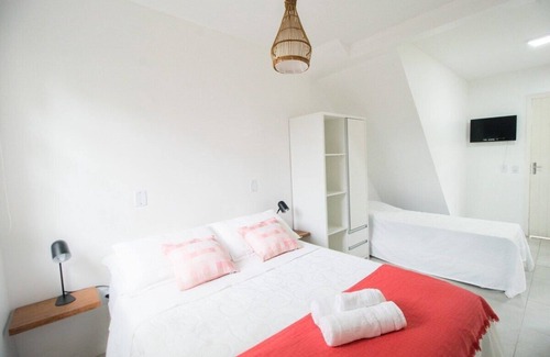 Multitemporada presents Lindo Studio 4 (Pitanga) at Pousada Quinta da Margem for groups of up to 3 people, located next to the Barra da Lagoa da Conceição canal, a space with a beautiful water freight garden. The Studio is a compact space of an environment, being all equipped with utensils and kitchen appliances, bedroom, private bathroom with beautiful views of the garden! Have a great stay in one of the most beautiful places on the island!
