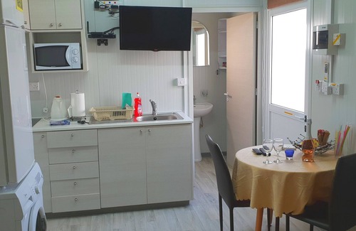 This is a prefabricated small Studio 18 square meters located in the 2nd floor of the building and it’s equipped with kitchen, air-conditioned unit , microwave, a stove and a fridge. A TV, a CD player and iron are also available. The private bathroom is stocked with a hairdryer.