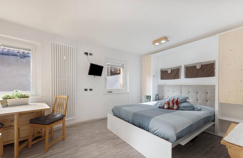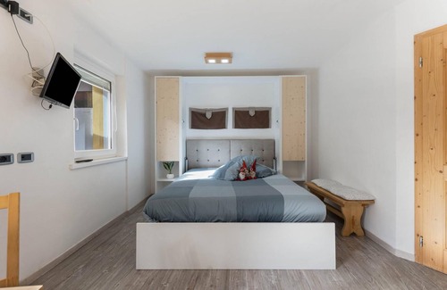 A centrally-located apartment in a traditional building in Tesero in Trentino, the brand new apartment Ciasa Parè Francesca consists of a furnished kitchenette, a bedroom as well as one bathroom and can therefore accommodate 2 people. Additional amenities include a private laundry area, storage space for skis and Wi-Fi. A cot and a highchair are available upon request at no extra cost. The apartment benefits from its central location within Tesero and all local amenities can be reached easily by foot. The nearest supermarket is just a couple of minutes (100m) walk away. There is also a good selection of bakeries, restaurants and bars in the town. The nearest ski lift is in the neighbouring town of Cavalese, which is 8 minutes (5km) drive away. The nearest airport is in Verona, which is 2 hours (150km) away by car. Street parking is available. Bed linens and towels are included in the price. Bedroom: 1x Double bed - Bikes provided Payment 50,00 € per day Pet allowed Payment 50,00 € per pet