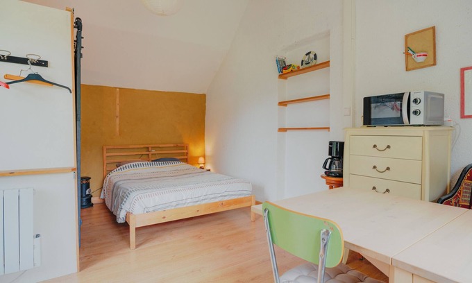 Studio Apartment 'Gite 2 Personnes Sauna Et Étang' with Shared Garden and Wi-Fi | Apartment in Broons