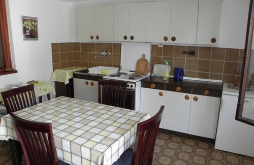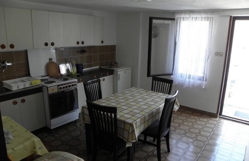 Beautiful holiday home in a quiet location on the western edge of Baska on the island of Krk and just 200m from the fine pebble beach. The house is located in a residential area without through traffic, surrounded by greenery and at the same time on a hill or hillside partly overlooking the sea. In the beautiful green and shady garden of the house you can unwind, or even organize a nice barbecue with family or friends especially since there is a nice dining area under a pergola. There are 3 apartments middle standards in the EC, 1st floor and 2nd floor for rent. All apartments have satellite TV. The two apartments on the 1st and 2nd floor are also air-conditioned. Pets are not allowed due to their own animals and out of consideration for other guests. The landlord couple lives throughout the year here on the ground floor of the house and will be happy to help you if questions arise or if the laundry needs to be washed. They speak excellent German, as well as Italian. The center and the old town of Baska are located on the other side of the bay, but there is in the district everything the vacationer's heart desires. On a 10 minute walk over the connecting promenade, past a giant slide and a campsite, you get into the alleyways and are surrounded by beautiful restaurants with outdoor terraces and sea views, as well as old churches, souvenir shops, etc.