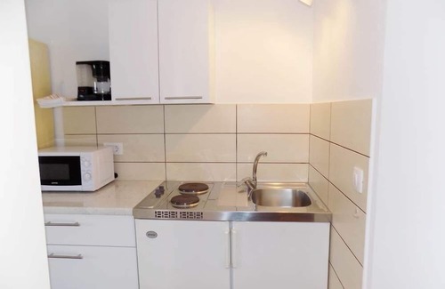 Fully fenced property: yes, Height of the fence: Studio Apartment 3(2+1) consists of one bedroom (double bed), kitchenette and bathroom with shower. The apartment have a balcony with external garden armchairs and beautiful sea view, air conditioning with possibility of heating (winter season), modern satellite LED TV, wireless internet connection and parking place. There is a possibility of extra bed.