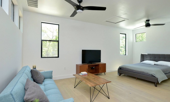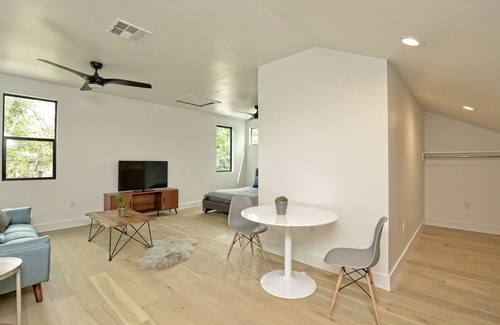 Studio East 14th is a new construction unit in tranquil neighborhood in the heart of Austin's vibrant & dynamic east side. Sitting atop a new architecturally modern home, the 500 square foot apartment with studio layout is separate though attached to main house through common area vestibule.