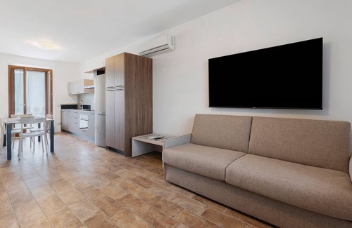 Located in Ponti sul Mincio, the studio apartment La Scarpina Alloggio N 1 has everything you need for a relaxing holiday. The 37 m² property consists of a living/sleeping area, a kitchen and 1 bathroom and can therefore accommodate 4 people. Additional amenities include a smart TV with streaming services, air conditioning as well as a washing machine. This accommodation does not offer: Wi-Fi and towels. This studio apartment features a private covered terrace for evening relaxation.