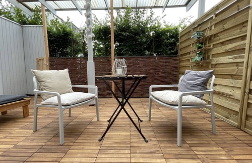 Located in Straubing, the studio apartment Zentral mit überdachter Terrasse has everything you need for a comfortable holiday. The 50 m² property consists of a living/sleeping area, a kitchen and 1 bathroom and can therefore accommodate 3 people. Additional amenities include high-speed Wi-Fi (suitable for video calls) with a dedicated workspace for home office, a smart TV with streaming services as well as a washing machine. This studio apartment features a private covered terrace for evening relaxation.