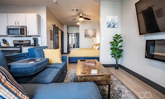Kick back and relax in this calm and stylish river-view studio apartment. A peaceful place to stay with countless entertainment nearby and seconds away from downtown Louisville and all major highways. Opportunities to conduct business, with luxury amenities for your visit such as clubhouse access and a beautiful rooftop with view of downtown Louisville. Book your stay today!