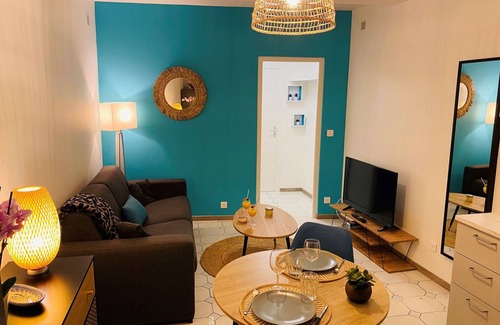 A stone's throw from the port and the beach, in the heart of the village of BOUZIGUES, in an alley on the ground floor, very beautiful air-conditioned studio of 25 m² with modern and neat decoration. It consists of a fully fitted kitchen area and equipped (oven, hood, induction hob, fridge/freezer combination, microwave, washing machine); a relaxation area sofa convertible into 140 cm (sleeping is comfortable).TV+WIFI. A bathroom + toilet.