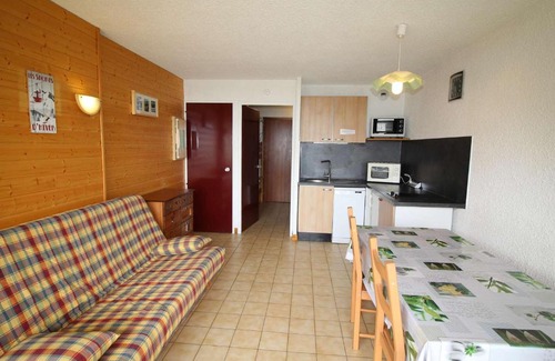 Studio cabine 4 couchages à 150m des pistes avec terrasse et parking - Auris en Oisans - FR-1-297-3 offers accommodations in Auris, 12 miles from Alpe d'Huez. With mountain views, this accommodation offers a terrace. Outdoor seating is also available at the apartment. The property includes a living room with a TV. There is a dining area and a kitchen complete with a dishwasher, an oven, and a microwave. For added privacy, the accommodation features a private entrance. Skiing is possible within the area and Studio cabine 4 couchages à 150m des pistes avec terrasse et parking - Auris en Oisans - FR-1-297-3 offers ski storage space. Alpes–Isère Airport is 65 miles away.