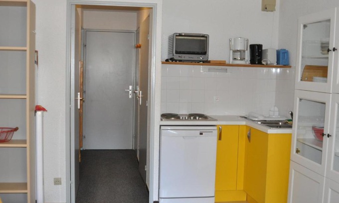 This apartment features accommodations with a terrace. The property includes a living room with a TV. There is a dining area and a kitchen complete with a dishwasher, a microwave, and a fridge. For added privacy, the accommodation features a private entrance. Ski storage space is available on-site and skiing can be enjoyed close to Studio cabine 4 pers, balcon, pied des pistes, ascenseur - FR-1-557A-1. Chambéry-Savoie Airport is 42 miles from the property.